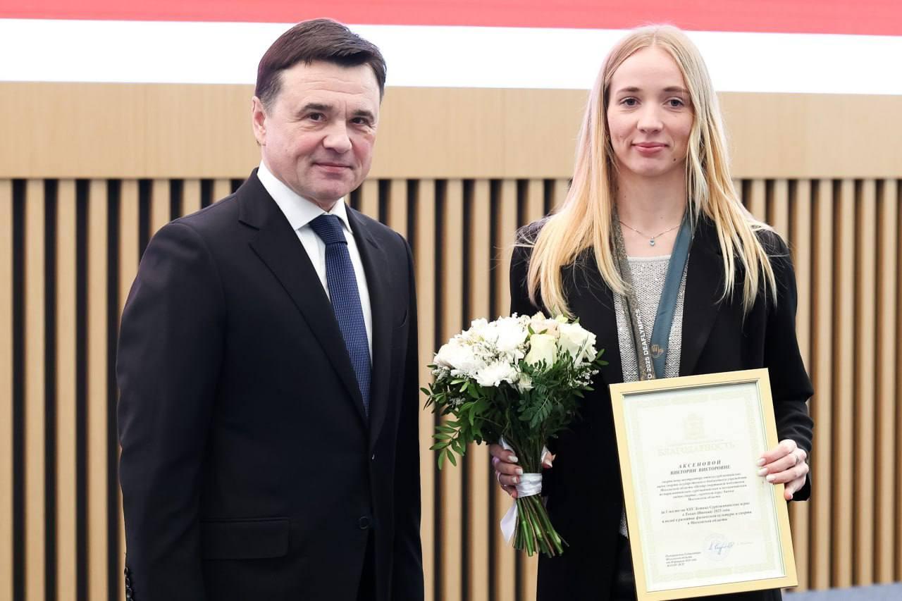 🏃Губернатор Подмосковья Андрей Воробьев лично вручил благодарственное письмо Виктории Аксеновой за две золотые медали, завоеванные на Сурдлимпийских летних играх в Токио и вклад в развитие физической культуры и спорта в регионе.